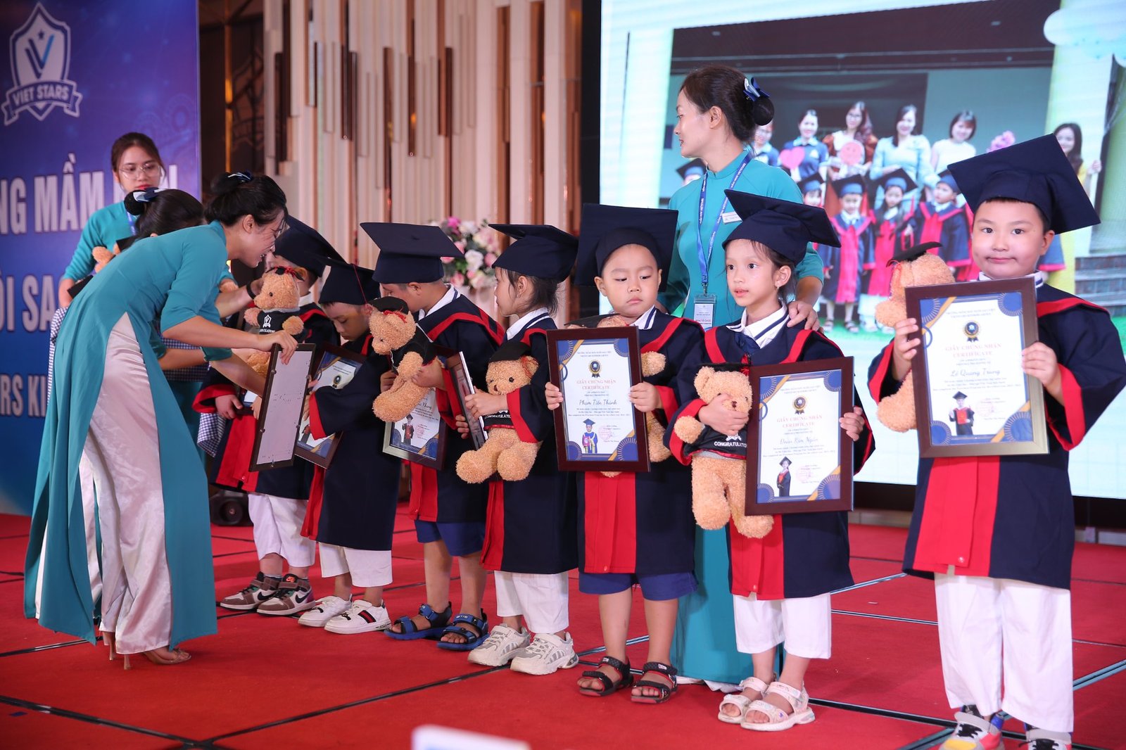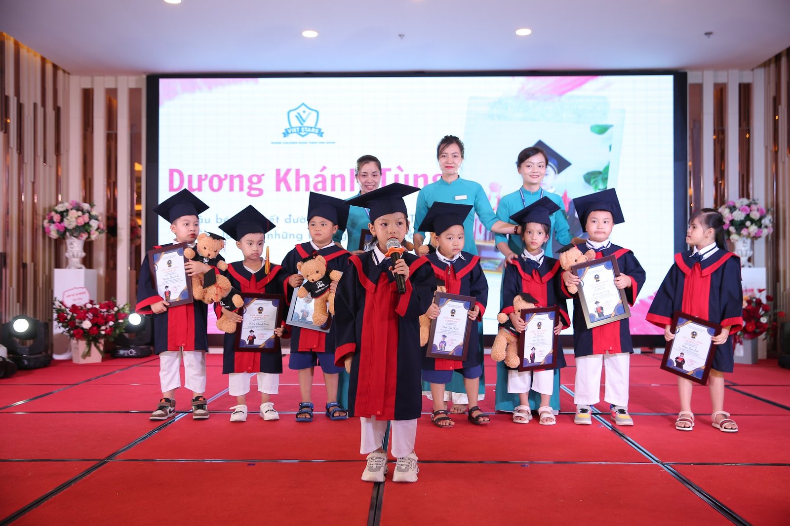🌞🌞 Giây phút xúc động nhất có lẽ là khi bạn đại diện của lớp đứng trên sân khấu gửi gắm đôi lời tới bố mẹ, thầy cô. Những cảm xúc hồn nhiên, những câu từ ngây ngô chứa đựng tình cảm to lớn của các con “Ngày mai chia tay rồi, sẽ nhớ mãi thầy cô, bạn bè, mái trường VietStars mến yêu”.